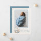 This cute baby boy birth announcement features a bunny rabbit surrounded by flowers in soft shades of blue on a background of polka dots. Personalise the front and back with your choice of name and special text.