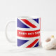 Celebrate the birth of William & Kate's baby boy with this mug. It has a royal baby in a carriage with the British flag in the background. The text, which you can customise, says Baby Boy Cambridge, with his date of birth: 22 July 2013