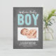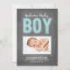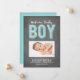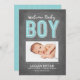 Modern welcome Baby Boy Birth Announcement on a chalkboard background. Choose a die-cut shape or textured paper for an even more luxurious announcement.