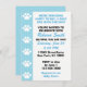 This invitation displays a blue stripe with white paw prints and the text "We're Dog-Gone Happy to say, a baby boy is on the way! You're invited to celebrate with [mum-to-be] before the big day!" These are great invitations for paw print themed, dog themed, puppy themed, or animal themed baby showers.