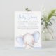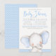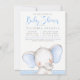 Boys elephant baby shower invitations with sweet watercolor baby boy elephant on a baby blue polka dot background. These adorable boy elephant baby shower invitations are easily customised for your event by simply adding your details.
