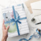 It’s a boy blue watercolor elephants on a white background. Balloons accent this cute pattern for all your baby shower gift wrapping.