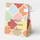 This shower favour box is printed in a colourful pastel pattern accented with a cute mum and baby elephant (blue) and is ready for you to personalise with your own text. See shower invitation and other matching items at www.zazzle.com/monogramsandmonikers. Created with graphics by Merisa Lerin at www.pixescrapper.com.