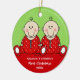 Our First Christmas Ornament features an adorable pair of baby twins ... a girl & boy set on a red & green polka dotted background! Personalise with your baby information and date and you're all set to go! Wonderful dated keepsake gift for your baby's 1st christmas.