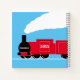 Personalized baby boy blank memory journal with a red train design.