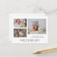 A modern cute baby photo photo collage birth announcement postcard to send to your friends and family. A collage of 3 adorable photos with baby's name. You must replace this photo with a photo of your own newborn with a landscape orientation photo that works best in the space. Add your names.