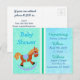 Baby Boy rocking horse Green or teal and Blue Baby Shower Invitation postcard. Quick and cheapest, yet adorably cutest way to affordably invite people to your baby boy themed baby shower! Just personalise this postcard by adding in your party's information in the customise area!