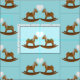 Light blue, rocking horse pattern fabric for sewing and crafts. Choose a favourite type of material and size needed to create something for a baby boy. The retro design features two brown rocking horse images with a white heart between them. The image would be especially appropriate for twins. Easily change the background colour.