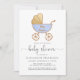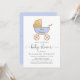 This cute baby boy shower invitation allows you to invite guests to a traditional baby shower, with a virtual option for those who cannot physically attend due to distance or other circumstances. The front features "baby shower" in a stylish script with swashes and a pastel blue and gold watercolor of a retro baby carriage (you can personalise the text on the carriage or leave blank).Easily personalise the shower date, location, registry and a contact for more information or to RSVP. On the reverse side, "virtual shower" is written in the same stylish script, and you can provide the details for joining the shower virtually.