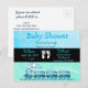 Baby Boy choo choo train Green or teal and Blue Baby Shower Invitation postcard. Quick and cheapest, yet adorably cutest way to affordably invite people to your baby boy themed baby shower! Just personalise this postcard by adding in your party's information in the customise area!