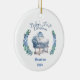 This first Christmas ornament for a baby boy has a blue basinet and lettering in blue. You can personalise it in with the baby's name and year so that it can be enjoyed for years to come.