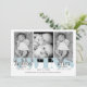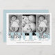 In a modern blue, this twins baby birth announcement features a 3 photo collage of your new sweet bundles of joy! Each line of text is easy to customise with your baby and birth details. On the back a coordinating blue and dot patterned background completes the design.