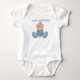 A baby boy in a blue blanket sleeper and blue text that reads "Baby Sister" on Baby Sister tote bags, Tshirts and other items.