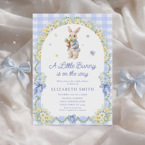 Baby Bunny Cute Rabbit Gingham Boy Baby Shower Invitation