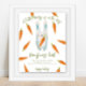 Gender neutral baby shower invitations. Featuring the saying 'A LITTLE BUNNY IS ON THE WAY!', an illustration of a watercolor bunny (rabbit) with carrot in paws, and many orange colour carrots. Matching items available.