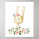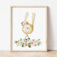 Baby Bunny, Woodland Animals, Boho, Pink Flowers Poster