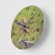 Baby Burrowing Owl standing on a hand made perch with a natural grass background. Makes a wonderful clock for the nature family. The family name can be changed.