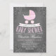 This elegant and chic Baby Shower Invitation features a pink baby carriage on a chalkboard background. Opt for a die-cut shape or a textured paper for an extra memorable invitations. Comes in multiple colours.