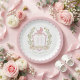 Baby Carriage Crest Monogram | Pink Baby Shower Paper Plate