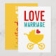 This charming modern baby shower invitation is great for the modern mama and their baby girl or boy (and their gender neutral baby shower!). The front says "Love, Marriage" and shows a baby carriage and the back says "Shower" with hearts falling into the carriage. Customise it with your shower's information. See all our coordinating items to make your shower picture perfect!