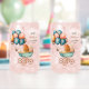Baby carriage and balloons with personalized name and date for keepsake glass. Works for girl or boy baby shower.