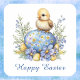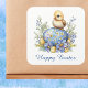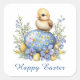 Baby Chick Happy Easter Egg Blue Yellow Flowers Square Sticker