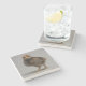 The coasters are gorgeous, a quality feel and heavy weight. They look like a precious archeological find. A rustic stone juxtaposed with a modern floral black and white print. I like the way the print goes slightly imperfect on the cut stone edges giving them a kind-of natural beauty.