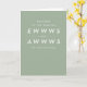A funny and punny play on "ooohs and ahhs" this congratulations to the new parents card features the sweet text "welcome to the endless ewwws and awwws of parenthood." It's a fun and clever way to welcome a new baby. With its light sage green background and interior text that can be customised, this greeting card is perfect for a baby shower for a boy or girl on the way!