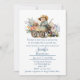 Adorable little baby cowboy sitting, in a cart, surrounded by flowers, decorates the top of this baby shower invitation. A solid white background on the invitation has clean federal blue custom text ready to personalise for your event. Lovely baby shower invitation with a western flare.