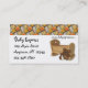 Business card for baby-related businesses, child care services, etc. features wooden baby cradle, teddy bear and alphabet block top border.
