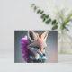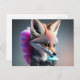 Baby, cute, cartoon grey Fox eating cotton candy Postcard