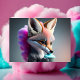 Baby, cute, cartoon, grey outfit, Fox, eating cotton candy, Postcard, AI Generated, Animal, cute animal