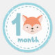* Baby Cute Fox Powder Blue Milestone One Month Old . 1 Month Old Sticker.