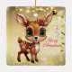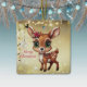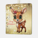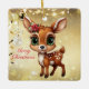 Celebrate the holiday season with this unique gold festive square deer lovers ceramic ornament featuring an endearing woodland forest animal cartoon graphic of a cute baby deer with poinsettia flowers tucked in the fawn's ear, and Merry Christmas written in red. Perfect for decorating your tree or as a thoughtful gift, this whimsical floral doe decor makes a cherished keepsake for years to come. Customise by changing the text, the font, the font colour, or remove the text. You can even transfer this design onto other products. Enjoy this design your way! Check out ForestBabies Xmas Deer Collection for matching decorations. 🎄🦌