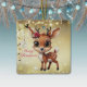 Celebrate the holiday season with this unique gold festive square deer lovers ceramic ornament featuring an endearing woodland forest animal cartoon graphic of a cute baby deer with poinsettia flowers tucked in the fawn's ear, and Merry Christmas written in red. Perfect reindeer with antlers for decorating your tree or as a thoughtful gift, this whimsical floral doe decor makes a cherished keepsake for years to come. Customise by changing the text, the font, the font colour, or remove the text. You can even transfer this design onto other products. Enjoy this design your way! Check out ForestBabies Xmas Deer Collection for matching decorations. 🎄🦌
