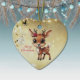 Celebrate the holiday season with this unique gold festive reindeer lover heart ceramic ornament featuring an endearing woodland forest animal cartoon graphic of a cute baby deer with poinsettia flowers tucked in the fawn's ear, and Merry Christmas written in red. Perfect reindeer with antlers for decorating your tree or as a thoughtful gift, this whimsical floral doe decor makes a cherished keepsake for years to come. Customise by changing the text, the font, the font colour, or remove the text. You can even transfer this design onto other products. Enjoy this design your way! Check out ForestBabies Xmas Deer Collection for matching decorations. 🎄🦌♡