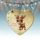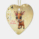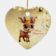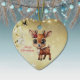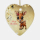 Celebrate the holiday season with this unique gold festive reindeer lover heart ceramic ornament featuring an endearing woodland forest animal cartoon graphic of a cute baby deer with poinsettia flowers tucked in the fawn's ear, and Merry Christmas written in red. Perfect reindeer with antlers for decorating your tree or as a thoughtful gift, this whimsical floral doe decor makes a cherished keepsake for years to come. Customise by changing the text, the font, the font colour, or remove the text. You can even transfer this design onto other products. Enjoy this design your way! Check out ForestBabies Xmas Deer Collection for matching decorations. 🎄🦌♡