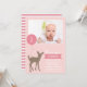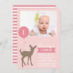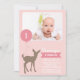 Customisable birthday party invitation perfect for kids birthday parties. It features pink and white striped pattern back and a cute doe with a party balloon.