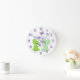 This cute baby nursery clock features two adorable little green baby dinosaurs watching purple butterflies rise. The matching purple numbers make the clock easy to read. Everything is placed on a white background. Be sure to see the matching nursery and baby products in our store.