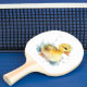 A cute ping pong paddle featuring a baby duck watercolor illustration.