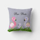 This Flamingo Due Date throw pillow features a family of flamingos on a purple and pink background.