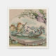 Easter celebration paper napkins showing baby chicks rowing across water in a little boat delivering Easter eggs wrapped in ribbon.