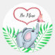 This cute baby elephant is on a background of green palm leaves. On the tip of his trunk there's a pink butterfly. The text on the card reads, 'Be My Valentine '. These stickers coordinate with the "Baby Elephant And Butterfly Childs Valentine Card", for children. It can be used on the envelope or as a seal for gift bags.