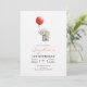Celebrate your little one’s big milestone with this adorable baby elephant 1st birthday invitation! Featuring a sweet hand-drawn elephant holding a bright red balloon, this design adds a charming and whimsical touch to any first birthday celebration. Customize the name, date, location, and RSVP details to create a beautifully personalized invitation that perfectly fits your party theme.