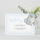 Blue Gingham Baby Elephant Baby Shower Invitation. Blue and White. Rounded corners.