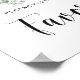 My thoughts on this product was excellent. Well printed in a gloss finishing and just the size l ordered. It arrived in good condition and am overall satisfied with the product. The printing turned out great. I was quite surprised with the finishing touch to the poster. The semi gloss was just right and a perfect size to display at the wedding.