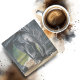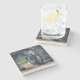 The coasters are gorgeous, a quality feel and heavy weight. They look like a precious archeological find. A rustic stone juxtaposed with a modern floral black and white print. I like the way the print goes slightly imperfect on the cut stone edges giving them a kind-of natural beauty.