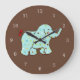 A cute baby elephant decorates this wall clock. The design is from an original illustration.