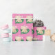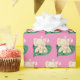 Cute elephant on a large green leaf with pink flowers on pink background.