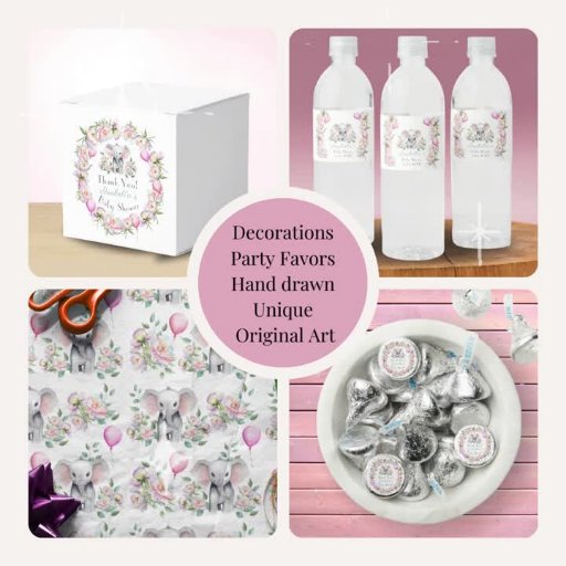 Baby Elephant With Peonies, Eucalyptus Baby ShowerDesigned by Daphne Sampson